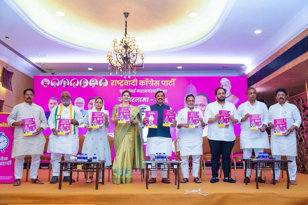 मुंबई | मुंबई महानगरपालिका निवडणुकीच्या रणधुमाळीत अजित पवार यांच्या राष्ट्रवादी काँग्रेसने बुधवारी आपला जाहीरनामा प्रसिद्ध करून मतदारांना आकर्षित करण्यासाठी आश्वासनांचा पाऊस पाडला आहे. वानखेडे स्टेडियम येथे आयोजित करण्यात आलेल्या भव्य कार्यक्रमात पक्षाने 700 चौ. फुटांपर्यंतच्या घरांना मालमत्ता करमाफी, धूळमुक्त मुंबई आणि भटक्या श्वानांचा बंदोबस्त ही तीन मुख्य ‘वचन हमी’ दिली आहे.