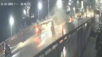 अंबरनाथ :- अंबरनाथ शहराच्या पूर्व आणि पश्चिम भागाला जोडणाऱ्या मध्यवर्ती उड्डाणपुलावर (हुतात्मा चौक ते मटका चौक दरम्यान) गुरुवारी रात्री भीषण अपघात झाल्याची घटना घडली आहे. सायंकाळच्या वेळी मोठी वर्दळ असलेल्या या पुलावर हा अपघात घडला. पूर्वेकडील हुतात्मा चौकाच्या दिशेने येणाऱ्या एका चारचाकी कारचा चालकाचे वाहनावरील नियंत्रण सुटले आणि त्याने समोरून येणाऱ्या तीन ते चार दुचाकीस्वारांना जोरदार धडक दिली. या धडकेची संपूर्ण घटना सीसीटीव्ही कॅमेऱ्यात कैद झाली असून, या घटनेमुळे परिसरात मोठा तणाव निर्माण झाला आहे.