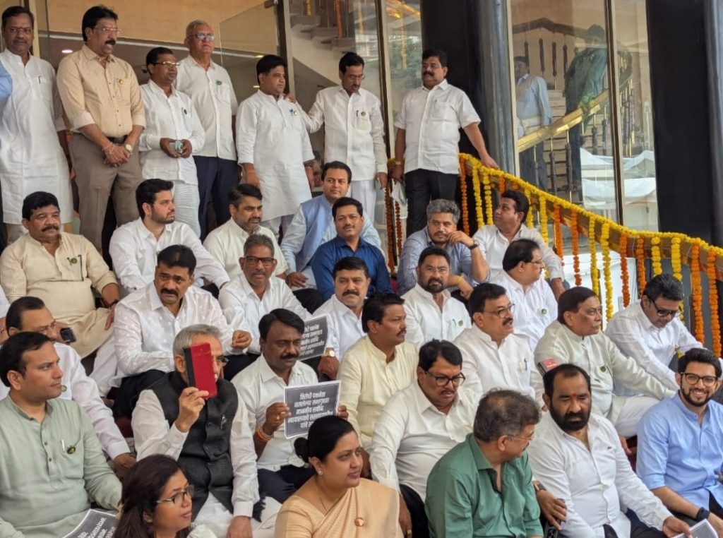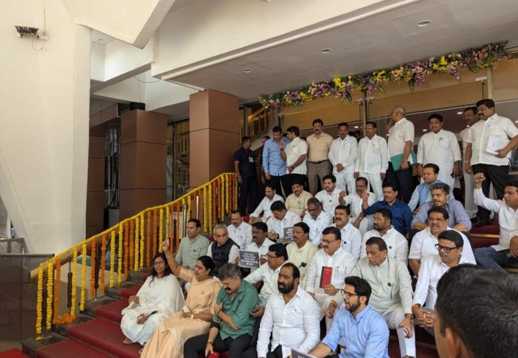 •ठाकरे गटाचा विधानभवनाच्या पायऱ्यांवर ‘अघोरी’ अंदाज, गोगावले यांची खिल्ली उडवली