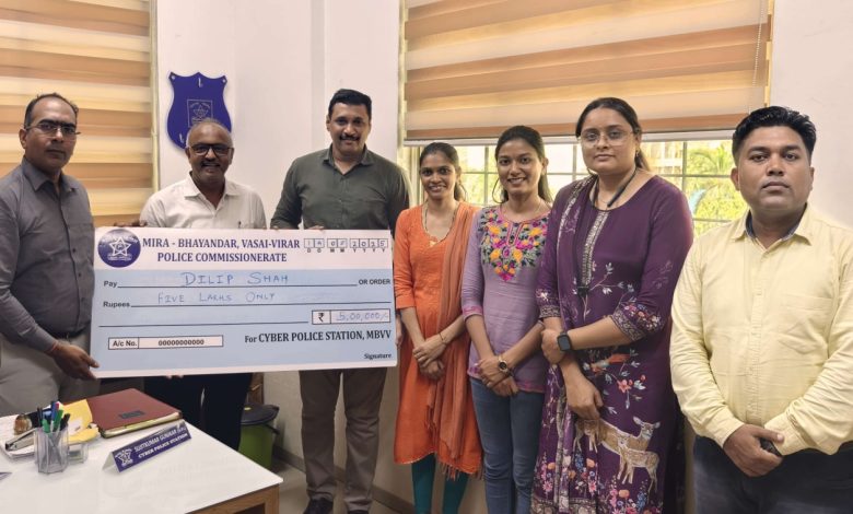 भाईंदर :- मीरा-भाईंदर वसई विरार पोलीस आयुक्तालयाच्या सायबर विभागाने धडाकेबाज कामगिरी करत फसवणुकीतील पाच लाख रुपये परत मिळून देण्यास यश आले आहे. भाईंदर पोलीस ठाण्याच्या हद्दीत राहणारे शाहा यांनी ऑनलाईन कार खरेदी करण्यासाठी E-commerce सर्च करण्यास सुरुवात केली. त्यानंतर त्यांनी एका जाहिरातीमध्ये स्वस्त दरात फोर व्हीलर कार मिळत असल्याचे पाहिले. आणि त्या आमिषाला बळी पडत पाच लाख रुपयांचे फसवणूक झाल्याची घटना समोर आली आहे.