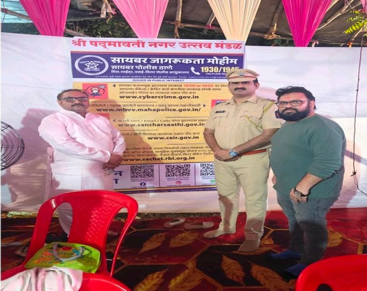 मीरा-भाईंदर :- आजच्या डिजिटल युगात सायबर गुन्हेगार प्रत्येक क्लिकवर आणि प्रत्येक ऑनलाइन व्यवहारावर नजर ठेवून आहेत. या पार्श्वभूमीवर, मिरा-भाईंदर, वसई-विरार पोलीस आयुक्तालयाने नागरिकांच्या सुरक्षेची ढाल अधिक मजबूत करण्यासाठी एक प्रभावी मोहीम हाती घेतली आहे. याचाच भाग म्हणून, भाईंदर पश्चिम येथील “श्री. पद्मावती नगर उत्सव” मंडळाच्या सहकार्याने भव्य सायबर जनजागृती कार्यक्रम आयोजित करण्यात आला. Bhayandar Cyber Awareness