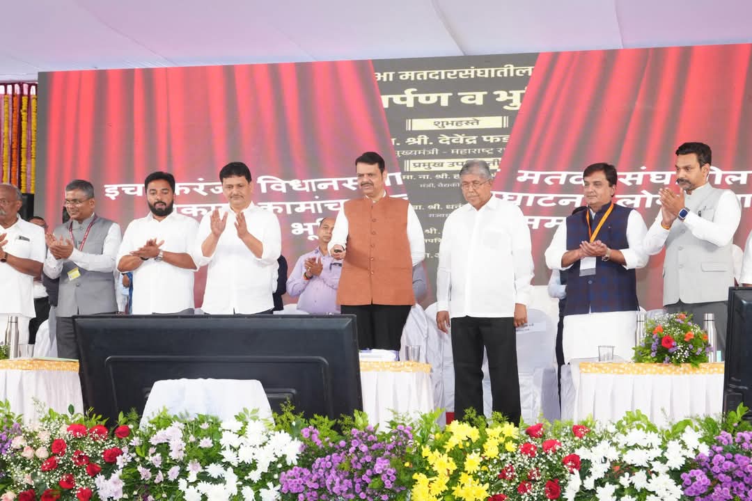 इचलकरंजी :- इचलकरंजी विधानसभा मतदारसंघातील विविध विकास कामांचे भूमिपूजन, उद्घाटन आणि लोकार्पण मुख्यमंत्री देवेंद्र फडणवीस यांच्या हस्ते नुकतेच पार पडले. एकूण 700 कोटींहून अधिक निधीच्या योजनांचा समावेश असलेल्या या कार्यक्रमात पायाभूत सुविधांपासून आरोग्य व सामाजिक कल्याण योजनांपर्यंत विविध उपक्रमांचा शुभारंभ करण्यात आला.