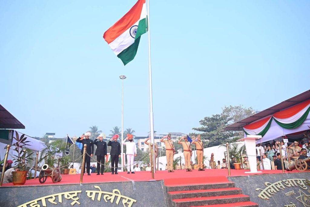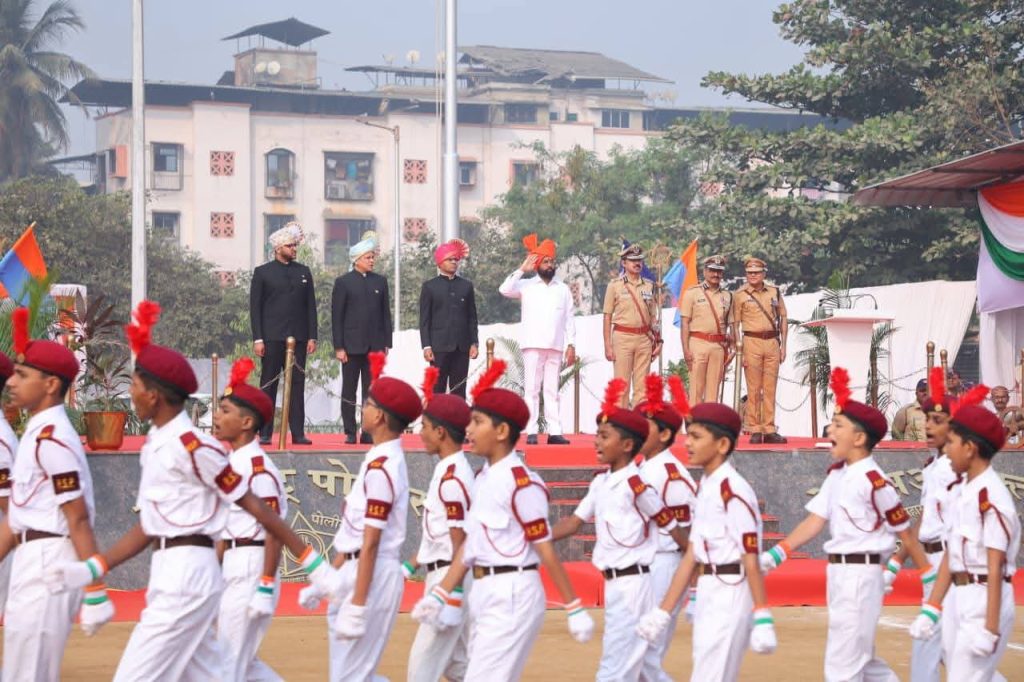 ठाणे | भारतीय प्रजासत्ताक दिनाच्या 77 व्या वर्धापन दिनानिमित्त राज्याचे उपमुख्यमंत्री एकनाथ शिंदे Eknath Shinde यांनी आज ठाण्यातील साकेत पोलीस मैदानावर आयोजित मुख्य शासकीय समारंभात ध्वजारोहण केले. यावेळी त्यांनी उपस्थितांना संबोधित करताना ठाणे जिल्ह्याला सर्वच क्षेत्रात क्रमांक एकचा जिल्हा बनवण्याचा आपला संकल्प असल्याचे जाहीर केले. शिस्तबद्ध संचलन आणि राष्ट्रभक्तीच्या वातावरणात हा सोहळा संपन्न झाला. Thane Police Republic Day Celebration