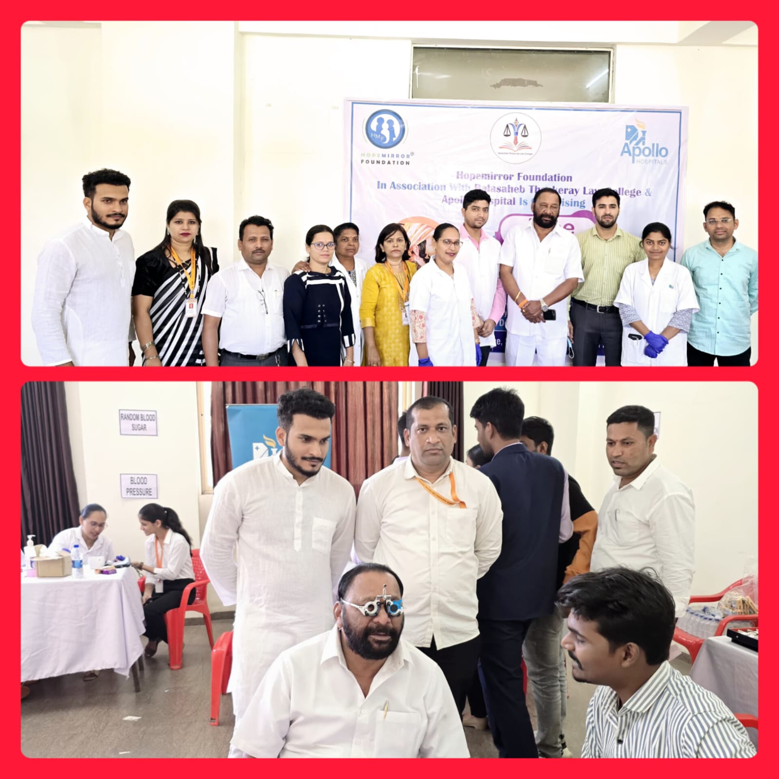 पनवेल जितिन शेट्टी : छत्रपती शिवाजी महाराज जयंतीनिमित्त होपमिरर फाउंडेशनने बाळासाहेब ठाकरे लॉ कॉलेज आणि अपोलो हॉस्पिटल यांच्या संयुक्त विद्यमाने आरोग्य तपासणी शिबिराचे आयोजन केले होते. Panvel Hope Mirror Foundation या कार्यक्रमाचे उद्घाटन बाळासाहेब ठाकरे विधी महाविद्यालयाचे अध्यक्ष श्री. बबनदादा पाटील यांच्या हस्ते करण्यात आले, ज्याचा उद्देश आरोग्य विषयक जागरूकता वाढवणे आणि समाजाला मोफत वैद्यकीय सल्ला देणे हा आहे. या शिबिरात आरोग्याच्या विविध बाबींचा समावेश करण्यात आला.
