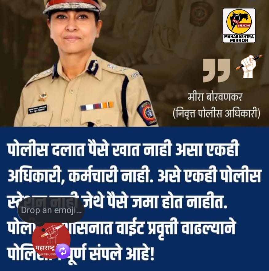 मीरा बोरवणकर IPS Meera Borwankar या पोलीस दलातील Maharashtra Police अत्यंत निर्भीड आणि प्रामाणिक अधिकारी म्हणून ओळखल्या जातात. मात्र, त्यांनीच आता दलाच्या आतल्या गंधकासारख्या वास्तवावर बोट ठेवत “प्रत्येक पोलीस स्टेशनमध्ये रोज पैसा जमा होतो — मग तो शिपाई असो की अधिकारी, भ्रष्टाचाराचं जाळं सर्वत्र पसरलंय!” असा थेट आरोप केला आहे. Maharashtra Police Corruption News