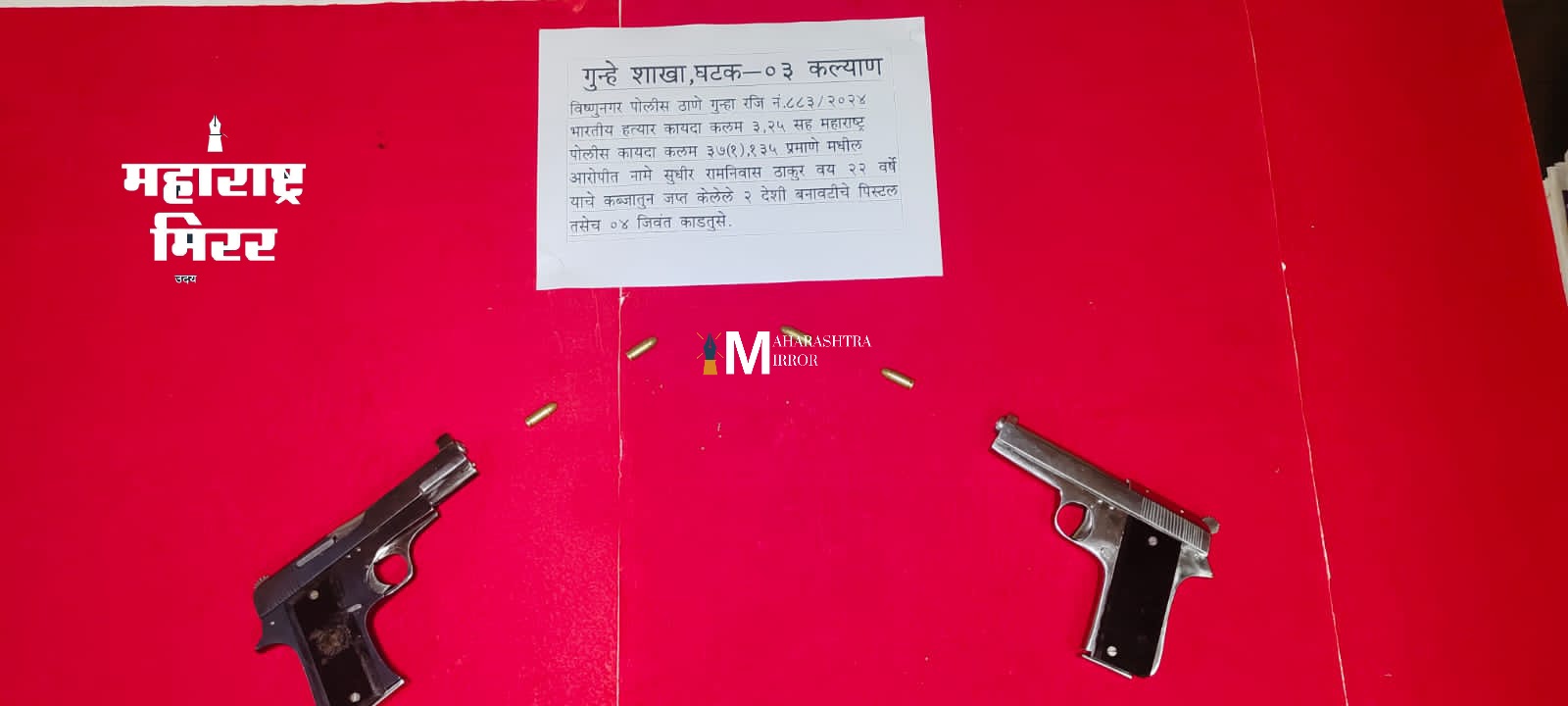 कल्याण, 19 नोव्हेंबर – कल्याण गुन्हे शाखेने Kalyan Crime Beanch देशी बनावटीच्या पिस्टल आणि जिवंत काडतुसांसह एका २२ वर्षीय युवकाला आज अटक केली. अटक युवकाचे नाव सुधीर रामनिवास ठाकुर असून तो उत्तर प्रदेशातील आग्रा जिल्ह्यातील नगला जगमोहन गावचा रहिवासी आहे. ही कारवाई कल्याण पोलिसांच्या गुन्हे शाखा घटक 3 ने वरिष्ठ पोलीस निरीक्षक अजित शिंदे यांच्या मार्गदर्शनाखाली केली.