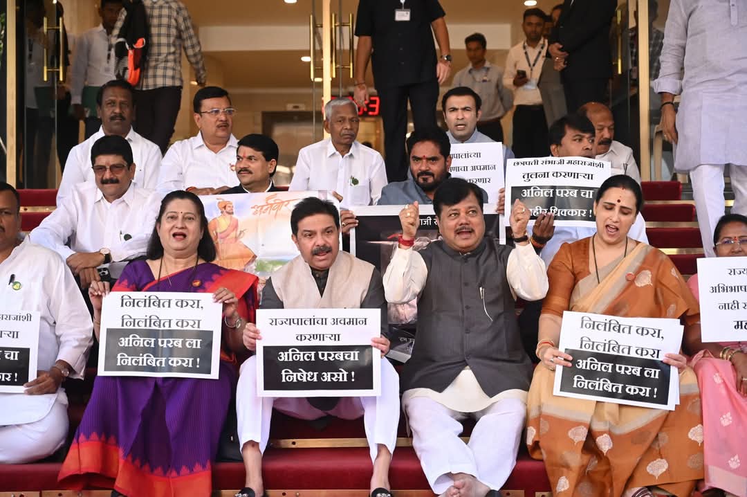 Pravin Darekar On Anil Parab : भाजपाच्या विधान परिषदेच्या आमदारांनी विधिमंडळाच्या पायऱ्यांवर अनिल परब यांच्या विरोधात ठिय्या