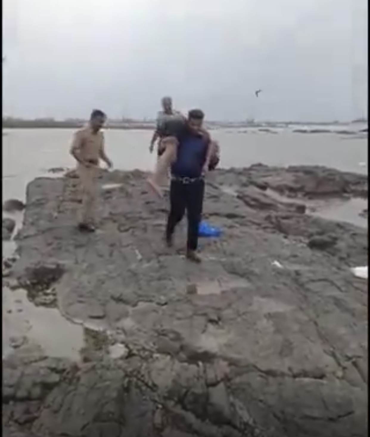 मुंबई :- मुंबई पोलीस Mumbai Police दलातील चार पोलिसांनी देवदूताची कामगिरीचं दर्शन घडवलं आहे. कार्टर रोड इथल्या समुद्रात बुडणाऱ्या एका व्यक्तीला तिथं गस्तीवर असलेल्या चार पोलीस कर्चमाऱ्यांनी वाचवलं. या व्यक्तीला पाण्याबाहेर काढून त्याला प्रथमोपचार दिले आणि पुढील उपचारांसाठी रुग्णालयात दाखल केलं. त्यांच्या या कामगिरीला दाद देताना मुंबईच्या पोलीस आयुक्तांनी Mumbai CP Vivek Phansalkar कौतुक केलं आहे. याचा व्हिडिओ देखील पोलिसांनी सोशल मीडियावर शेअर केला.