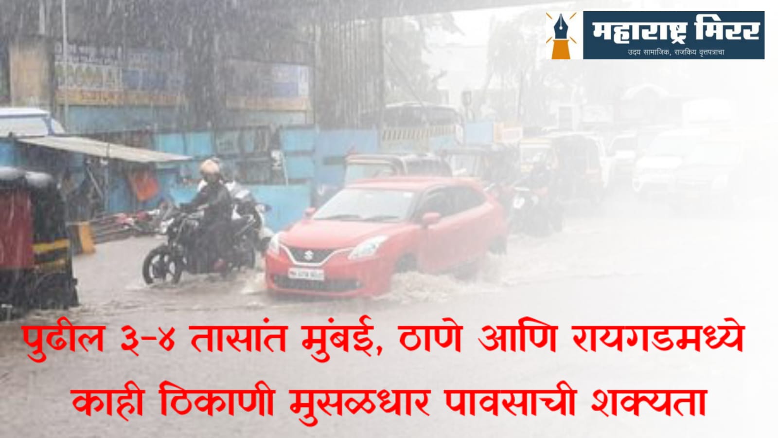 पनवेल : भारतीय हवामानशास्त्र विभागाने (IMD) मुंबईने पुढील ३-४ तासांत मुंबई शहर, उपनगरे, ठाणे आणि रायगड जिल्ह्यांतील काही ठिकाणी मुसळधार पावसाचा इशारा दिला आहे. बुधवार, २७ जून २०२४ रोजी IST रात्री ८:४९ वाजता चेतावणी जारी करण्यात आली. Mumbai Weather Update Latest News