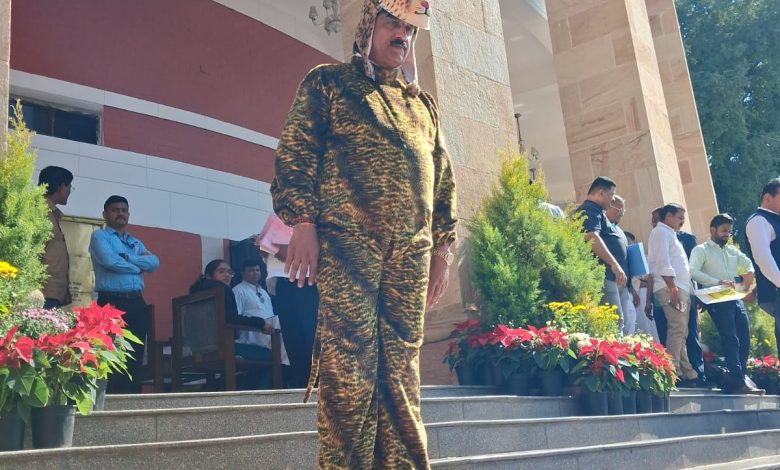 नागपूर :- राज्यात बिबट्यांनी मानवी वस्तीवर घातलेल्या धुमाकुळामुळे लहान मुलांना जीव गमवावा लागत असताना, या गंभीर प्रश्नाकडे शासनाचे लक्ष वेधण्यासाठी जुन्नरचे आमदार शरद सोनवणे यांनी आज हिवाळी अधिवेशनात लक्ष वेधले. त्यांनी बिबट्याचा वेष परिधान करून विधानसभेत प्रवेश केला, ज्यामुळे नागपुरात मोठी चर्चा रंगली आणि या प्रश्नाचे गांभीर्य सभागृहाबाहेरही पोहोचले.