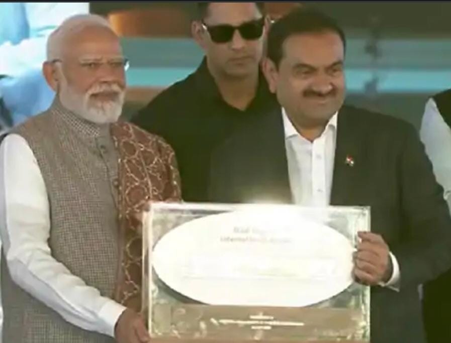 नवी मुंबई :- पंतप्रधान नरेंद्र मोदी यांनी आज नवी मुंबई आंतरराष्ट्रीय विमानतळाच्या पहिल्या टप्प्याचे उद्घाटन केले. या महत्त्वाकांक्षी प्रकल्पाचे उद्घाटन मोदींच्या हस्ते पार पडले. यावेळी त्यांच्या स्वागतासाठी उपमुख्यमंत्री देवेंद्र फडणवीस आणि दोन्ही उपमुख्यमंत्री अजित पवार आणि एकनाथ शिंदे उपस्थित होते. या सोहळ्यात उद्योगपती गौतम अदानी यांनीही पंतप्रधानांचे स्वागत केले.