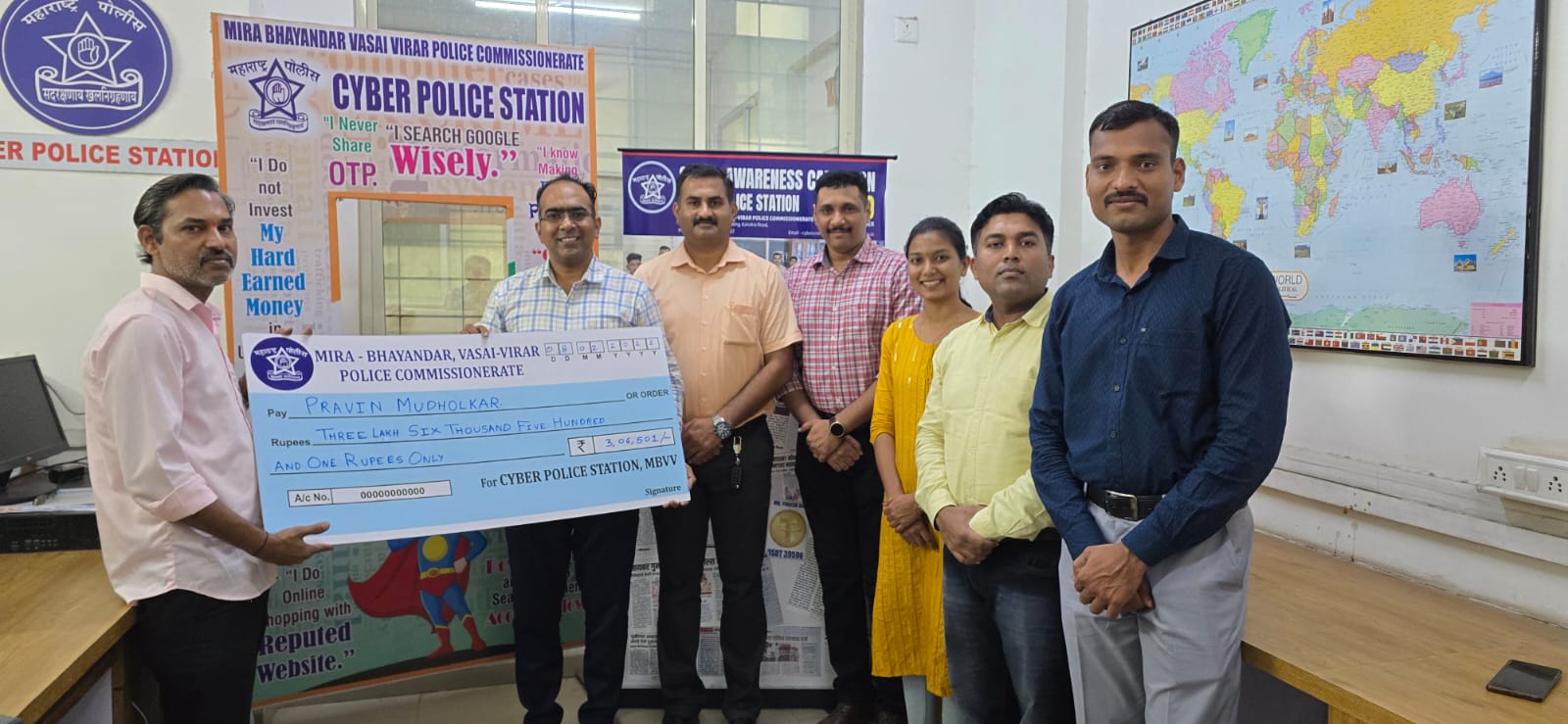 मिरा रोड पोलीस ठाण्याच्या हद्दीत राहणाऱ्या मुधोळकर यांना वर्क फ्रॉम होम च्या नावाचे आमिष दाखवून टेलिग्राम या ॲपद्वारे टास्क देऊन आणि ते टास्क पूर्ण करण्यासाठी पाच लाखावर अधिक रक्कम ऑनलाईन भामट्यांनी घेतली होती परंतु आपली फसवणूक झाली हे लक्षात येतात त्यांनी सायबर पोलीस ठाणे येथे तक्रार दाखल केली होती. सायबर पोलिसांनी तक्रारीच्या अनुषंगाने संबंधित बँक खात्याचा शोध घेऊन फसवणूकदाराची वेगवेगळ्या बँक खात्यात वळती झाली आहे ती थांबवण्यात झाली आहे. पोलिसांनी न्यायालयीन प्रक्रिया पूर्ण करून फसवणूक झालेल्या रक्कमेपैकी तीन लाख 6 हजार 501 रुपये मूळ खात्यात परत मिळवून देण्यास सायबर पोलिसांना यश आले आहे.