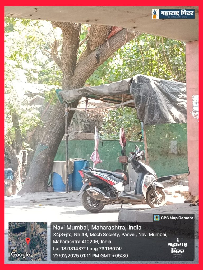 पनवेल जितिन शेट्टी : महानगरपालिका हद्दीतील प्रभाग समिती “ड” अंतर्गत, तक्का गावाच्या प्रवेशद्वाराजवळ, दोन मटण दुकानदारांनी अत्यंत बेजबाबदारपणे आणि नागरिकांच्या आरोग्यास धोका निर्माण होईल अशा पद्धतीने आपल्या दुकानांचे बांधकाम केले आहे. हे बांधकाम केवळ अनधिकृतच नाही, तर थेट गटारावरच करण्यात आले आहे, हे अत्यंत चिंताजनक आहे. या ठिकाणी उघड्यावर, अस्वच्छ जागी मटण विक्री होत असल्याने नागरिकांच्या आरोग्याला गंभीर धोका निर्माण झाला आहे.