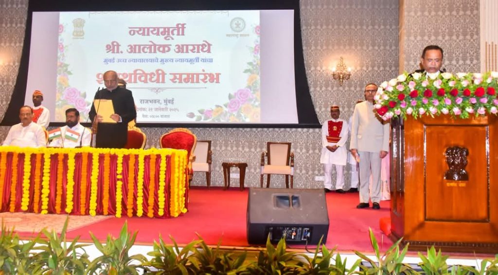 न्यायमूर्ती आलोक आराधे, मुंबई उच्च न्यायालयाचे नवे मुख्य न्यायाधीश, राज्यपालांनी दिली शपथ