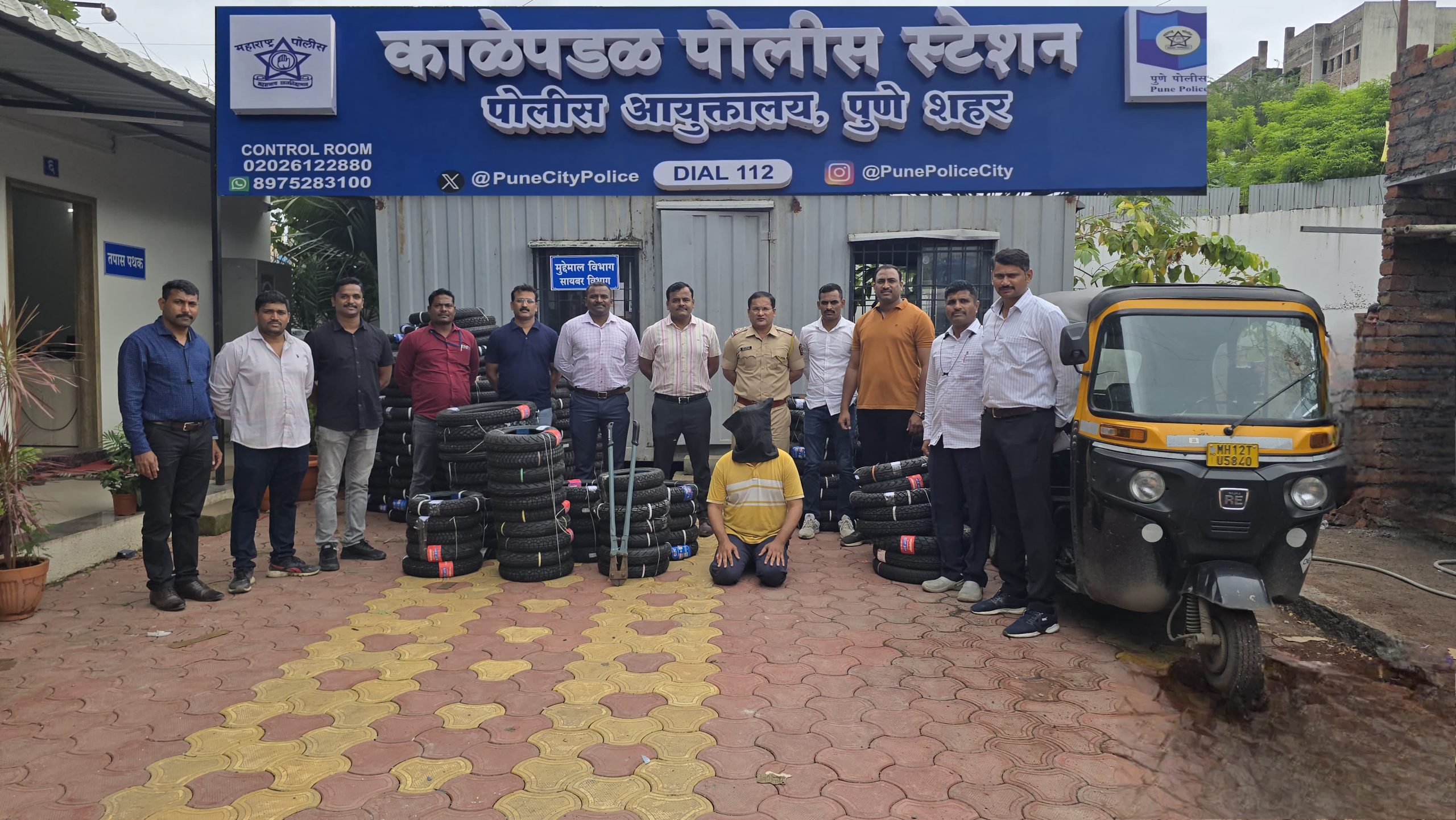 पुणे :- पुणेकरांनो, सुटकेचा निःश्वास सोडा! शहराला वेठीस धरणाऱ्या ‘टायर गँग’चा थरारक ‘खेळ’ अखेर संपला आहे! रात्रीच्या भयाण अंधारात दुकानांची शटर तोडून नवीन दुचाकीचे टायर चोरून नेणाऱ्या अट्टल ‘टायर चोरा’ला काळेपडळ पोलिसांनी फिल्मी स्टाईलने बेड्या ठोकल्या आहेत. तब्बल 3 लाख 53 हजार 175 रुपयांचा चोरीचा मुद्देमाल जप्त करत, या धडाकेबाज कारवाईने पुणे पोलिसांनी गुन्हेगारांना ‘अखेरचा सिग्नल’ दिला आहे! Pune Police Arrested Gangster