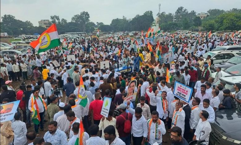 नाशिक :- आगामी महापालिका आणि स्थानिक स्वराज्य संस्थांच्या निवडणुका डोळ्यासमोर ठेवून राष्ट्रवादी काँग्रेस (शरद पवार) पक्षाने शेतकऱ्यांच्या प्रश्नांवर लक्ष केंद्रित केले आहे. याचाच एक भाग म्हणून आज, सोमवारी नाशिकमध्ये पक्षाच्या वतीने ‘आक्रोश मोर्चा’ काढण्यात आला. ईदगाह मैदानापासून जिल्हाधिकारी कार्यालयावर निघालेल्या या मोर्चाचे मुख्य आकर्षण खुद्द पक्षाचे अध्यक्ष शरद पवार यांची उपस्थिती होती.