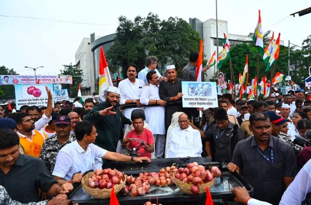 काही महिन्यांपासून कांद्याला मिळणाऱ्या अत्यल्प भावामुळे नाशिक जिल्ह्यातील शेतकरी हैराण झाले आहेत. महायुती सरकारविरुद्ध वाढत असलेल्या या नाराजीचा फायदा घेण्याचा प्रयत्न शरद पवार गटाकडून केला जात आहे. निवडणुकीच्या पार्श्वभूमीवर कांदा उत्पादक शेतकऱ्यांच्या पाठीशी खंबीरपणे उभे राहण्याचा संदेश या मोर्चातून देण्यात आला. या मोर्चाला खा. सुप्रिया सुळे, प्रदेशाध्यक्ष शशिकांत शिंदे, आ. रोहित पवार, रोहिणी खडसे यांच्यासह इतर प्रमुख नेत्यांचीही उपस्थिती होती.