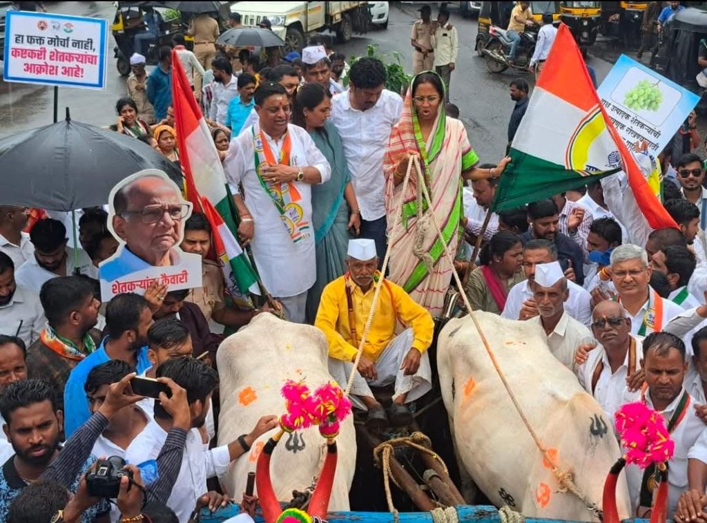 राजकारणात आल्यापासून शरद पवार यांनी ग्रामीण भागाशी आणि विशेषतः शेतकऱ्यांशी आपली नाळ कायम ठेवली आहे. त्याचेच दर्शन आज नाशिकमध्ये झाले. ईदगाह मैदानातून निघालेल्या या मोर्चासाठी मोठ्या संख्येने कार्यकर्ते जमले होते. मोर्चात बैलगाडीही आणण्यात आली होती, तर शरद पवार एका खुल्या जीपमधून सहभागी झाले होते. त्यांच्या जीपच्या पुढील भागात ठेवलेले कांदे सर्वांचे लक्ष वेधून घेत होते, ज्यातून त्यांनी कांदा उत्पादक शेतकरी हाच आपला खरा आधार असल्याचे दाखवून दिले.