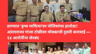 •शिळफाटा-दिवा रोडवर पहाटेच्या सुमारास थरारक कारवाई; आंतरराज्यीय ड्रग्ज रॅकेटचा पर्दाफाश ठाणे | अंमली पदार्थांच्या तस्करीविरुद्ध ठाणे पोलीस आयुक्तांनी पुकारलेल्या विशेष…