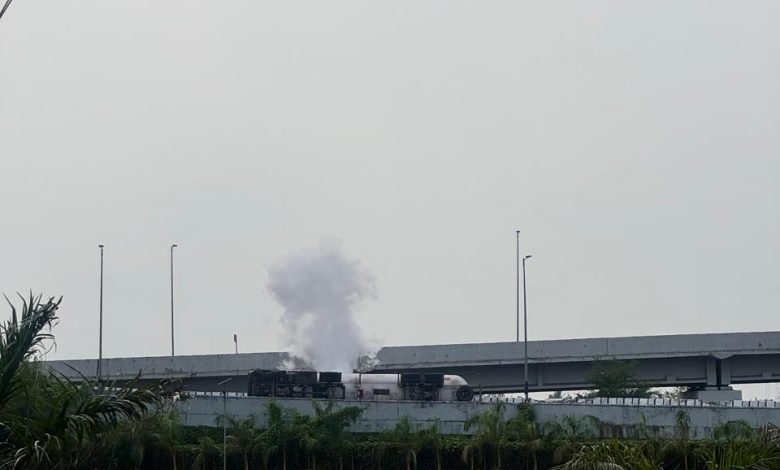 Uran News : उरण मधील करळ ब्रिज वर गॅस टँकर पलटी झाला.