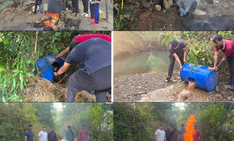 पोलिसांनी छापा मारला असता, जंगलात चुलीवर दारू बनविण्यासाठी लागणाऱ्या विविध साधनांचा वापर सुरू असल्याचे दिसून आले. या कारवाईत पोलिसांनी त्वरित 1,150लिटर ‘वॉश’ (हातभट्टी दारू तयार करण्यासाठी लागणारा कच्चा माल), 50 लिटर तयार गावठी दारू आणि दारू निर्मितीचे साहित्य असा एकूण 1 लाख 22 हजार 850 रुपये किंमतीचा मुद्देमाल जप्त केला आणि जागेवरच नष्ट केला.