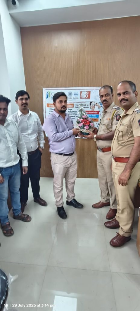 विरार :- मिरा भाईंदर, वसई विरार पोलीस आयुक्तालयाच्या परिमंडळ-3 अंतर्गत, वाहतूक नियंत्रण शाखा, विरारने पोलीस अधिकारी आणि अंमलदारांच्या आरोग्याची काळजी घेण्यासाठी मोफत आरोग्य शिबिराचे आयोजन केले. दिनांक 29 जुलै, 2025 रोजी विरार वाहतूक शाखेच्या कार्यालयात आयोजित या शिबिराला 55 अधिकारी आणि अंमलदारांनी लाभ घेतला.
