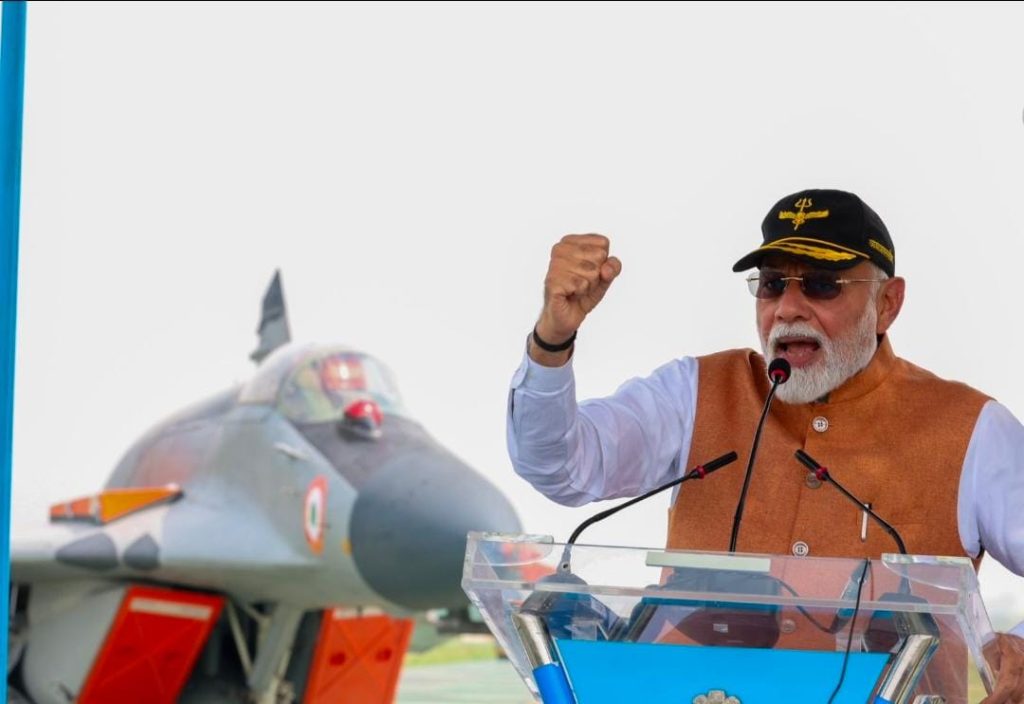 पंतप्रधान मोदींच्या हवाई दलाच्या कर्मचाऱ्यांशी झालेल्या संभाषणाचे अनेक फोटोही समोर आले आहेत. फोटोमध्ये पंतप्रधान मोदी सैन्याच्या जवानांना प्रोत्साहन देताना दिसत आहेत.विशेष म्हणजे एका फोटोमध्ये पंतप्रधान मोदींच्या मागे एक भारतीय लढाऊ विमान दिसत आहे आणि त्यावर लिहिले आहे – “शत्रूचे वैमानिक नीट का झोपू शकत नाहीत?”