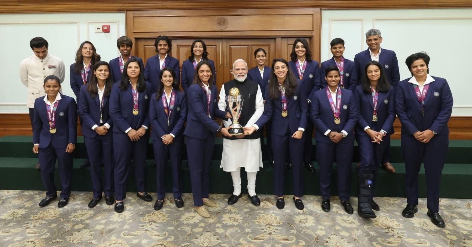 नवी दिल्ली :- पहिल्यांदाच महिला एकदिवसीय विश्वचषक जिंकणाऱ्या भारतीय महिला क्रिकेट संघाने बुधवारी पंतप्रधान नरेंद्र मोदी यांची भेट घेतली. पंतप्रधानांनी संघाचे त्यांच्या ऐतिहासिक विजयाबद्दल अभिनंदन केले, तसेच सलग तीन पराभव आणि सोशल मीडियावर ट्रोलिंग असूनही संघाने केलेल्या उल्लेखनीय पुनरागमनाचे विशेष कौतुक केले.